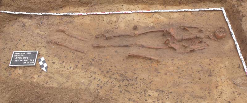 Im Januar 2012 wurden beim Abziehen der alten Oberfläche erste Gräber gefunden. Der folgende starke Frost verzögerte die Dokumentation etwas, so dass erst Mitte März die Arbeiten abgeschlossen wurden.