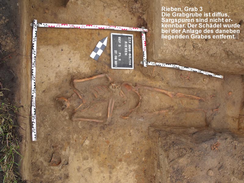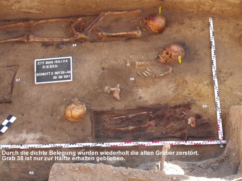 Das vom Bau unberührte Kirchhofareal ist schraffiert. Bei den vorgefundenen Gräbern handelt sich ausnahmslos um christliche Bestattungen, die im Zeitraum ab der Ortsgründung im 13. oder 14. Jh. bis ins 19. bzw. 20. Jh. begraben wurden. Trotz des einheitlichen christlichen Grabritus unterscheiden sich die Gräber im Detail, sei es durch die Art der Särge oder durch zum Teil recht aufwendigen Totenschmuck.