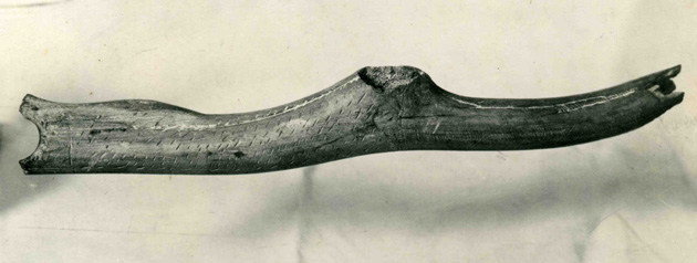 der typischen Lochbohrung zerbrochen und daher ist es recht erstaunlich, dass er in seiner Bedeutung überhaupt erkannt wurde. Der in das Mesolithikum (etwa 9500 - 4500 v.Chr.) datierte, damals so genannte „Kommandostab“ wurde umgehend in Berlin und Breslau untersucht und konserviert. Bis heute, so Frau Reichel vom Prignitzmuseum Havelberg, ist er nicht nur das älteste, sondern auch eines der wertvollsten Objekte im Museum.