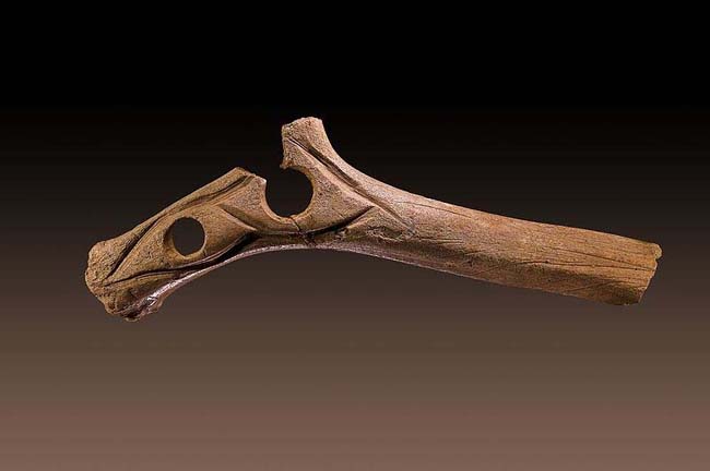 Solche Geräte kommen seit ca. 35 000 Jahren vor und wurden in ganz Europa, aber auch in Nordamerika gefunden. Charakteristisch ist die Bohrung und oft flächige ornamentale Verzierungen; als Material wurden Geweihstangen, Knochen und Elfenbein verwendet. Interpretiert werden die Geräte als Repräsentationsobjekt, weswegen sie füher als "Kommandostab" bezeichnet wurden. Weitere Deutungen gehen in Richtung Werkzeug zur Pfeil- oder Speerglättung, Nutzung als Speerschleuder oder als eine Art Maulknebel zum Bändigen von Tieren. Für alle diese Deutungen gibt es Indizien, ein Beweis konnte bislang nicht geführt werden.