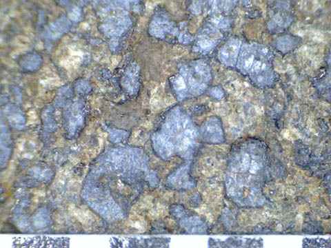 aus dem Schneidenbereich des Beils lässt sich gut die Feinstruktur des Steins und auch der zonenweise recht glatte Schliff erkennen. Heute werden u.a. Bodenbeläge aus diesem Stein gefertigt.